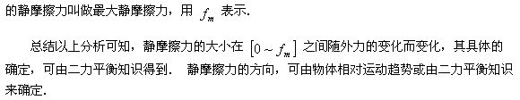2、兩個物體相互接觸,當(dāng)有相對滑動的趨勢,但又保持相對靜止?fàn)顟B(tài)時,在它們接觸面上出現(xiàn)的阻礙相對滑動的作用力