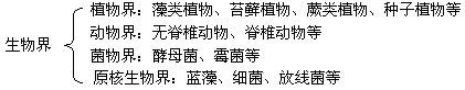 說明:引導學生列舉不同的生物類型,邊列舉邊引導學生進行對比,最后總結歸納出生物界的基本類群。
