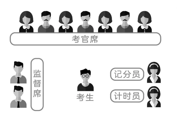 結構化面試考場一般會有5~9名考官,另外還有計時員、記分員、監(jiān)督員等。