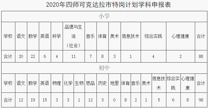 2020年第四師可克達(dá)拉市擬招聘義務(wù)段特崗教師186名(小學(xué)88名,中學(xué)98名)。崗位需求見附件1